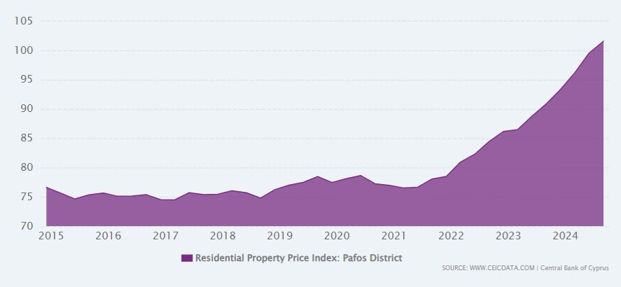 - גרף מגמת מחירי הנדל"ן בפאפוס בעשור האחרון